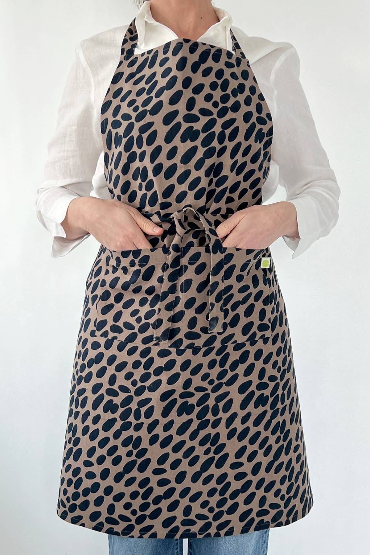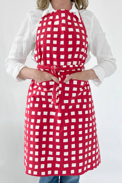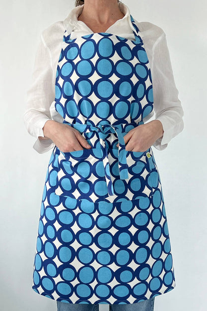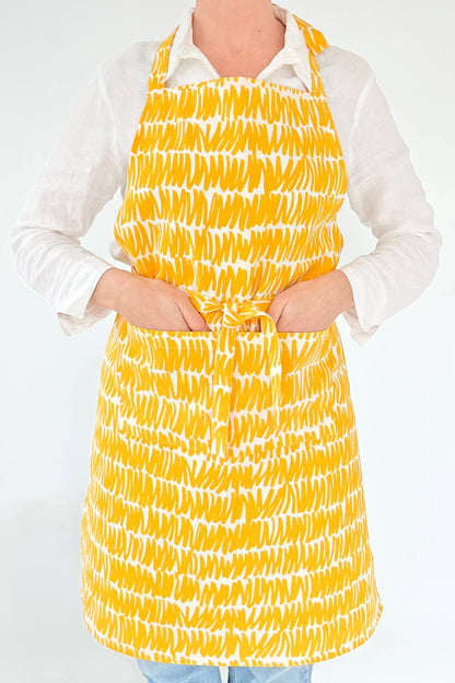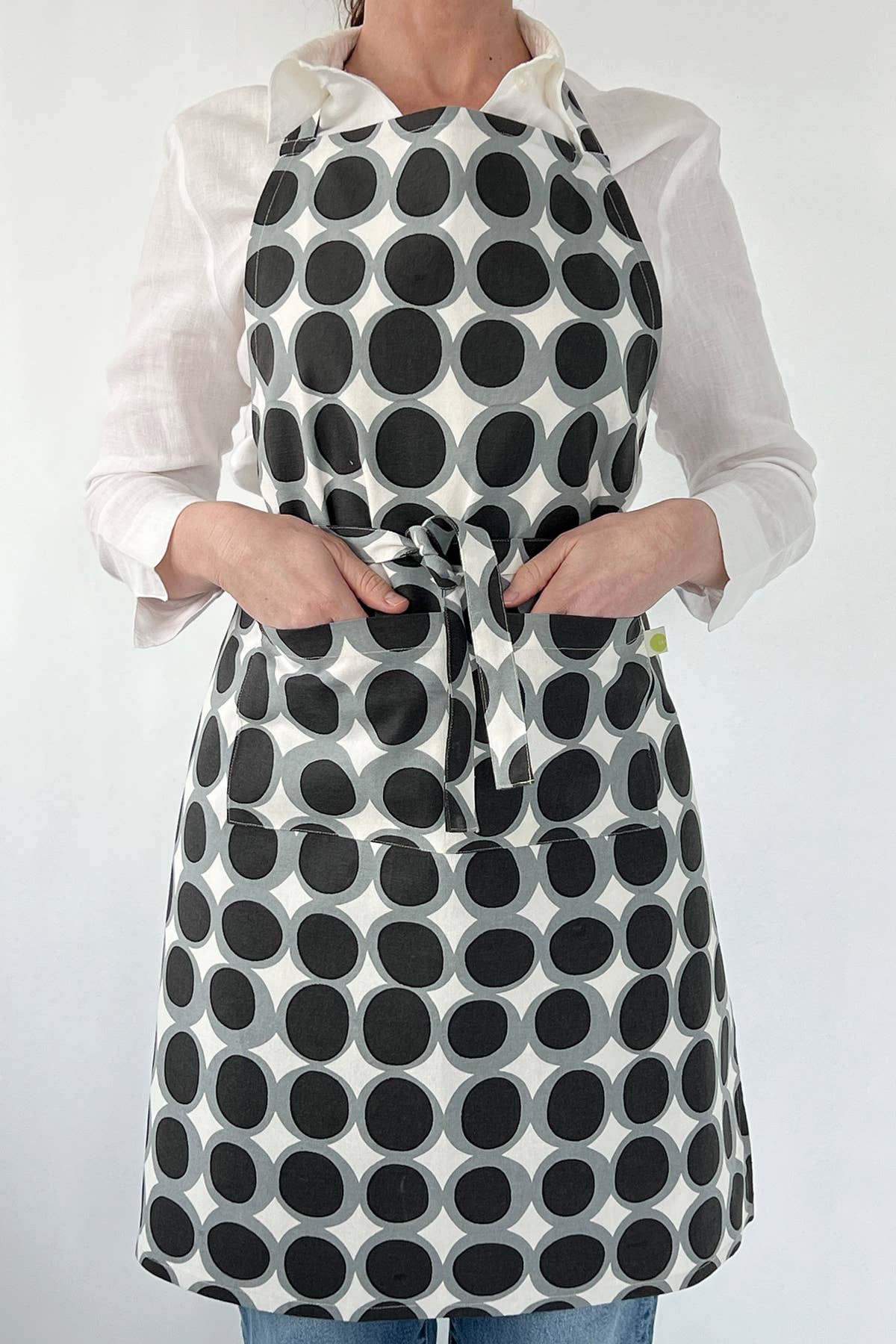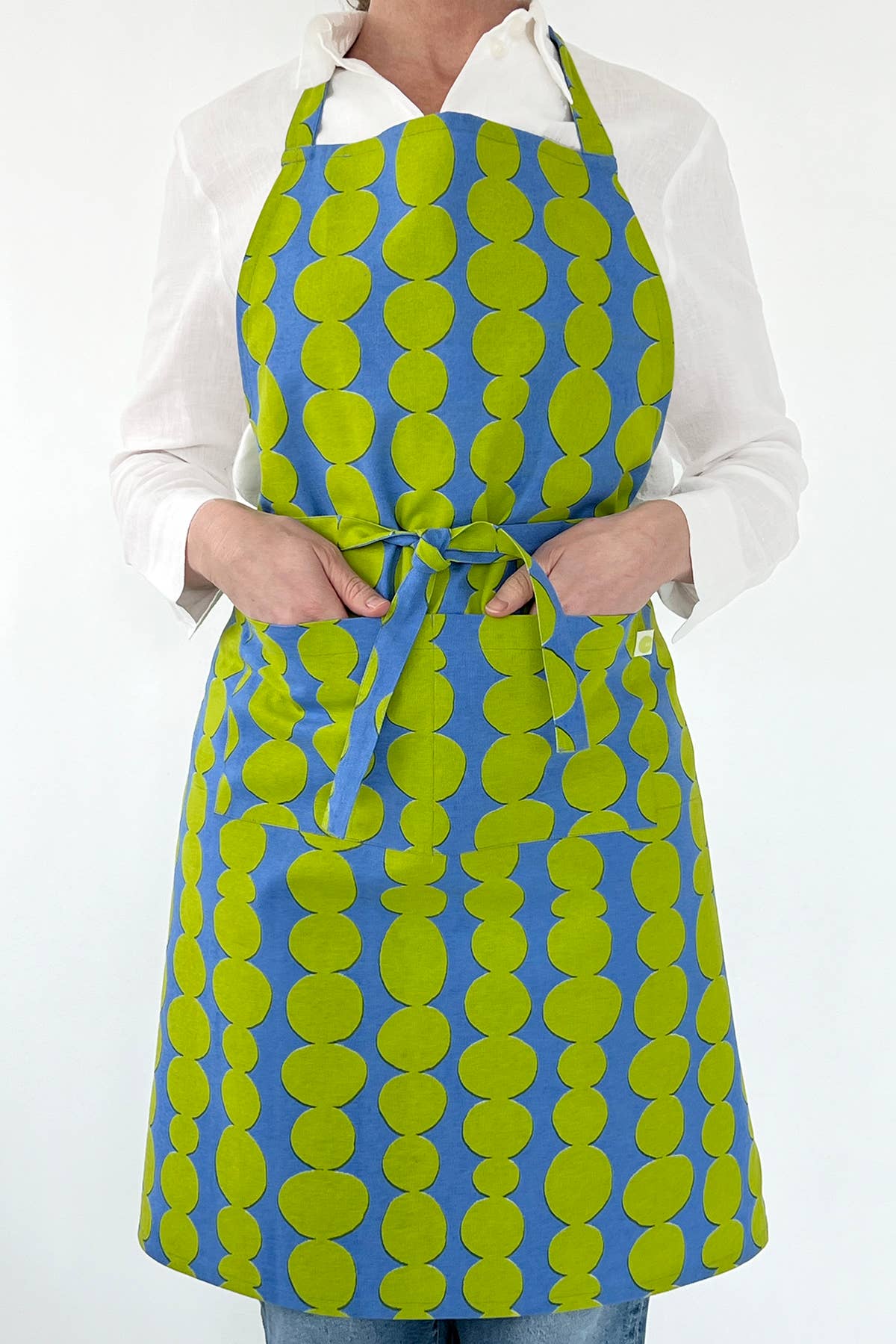 Donna Gorman's vibrant, hand-painted designs combine bold colors and prints for a perfect kitchen apron! Ties at the neck and waist provide a comfortable fit, and the divided front pocket adds a functional touch. Make cooking even more fun with these aprons! Coordinates with the tea towel collection to make a great gift bundle.
