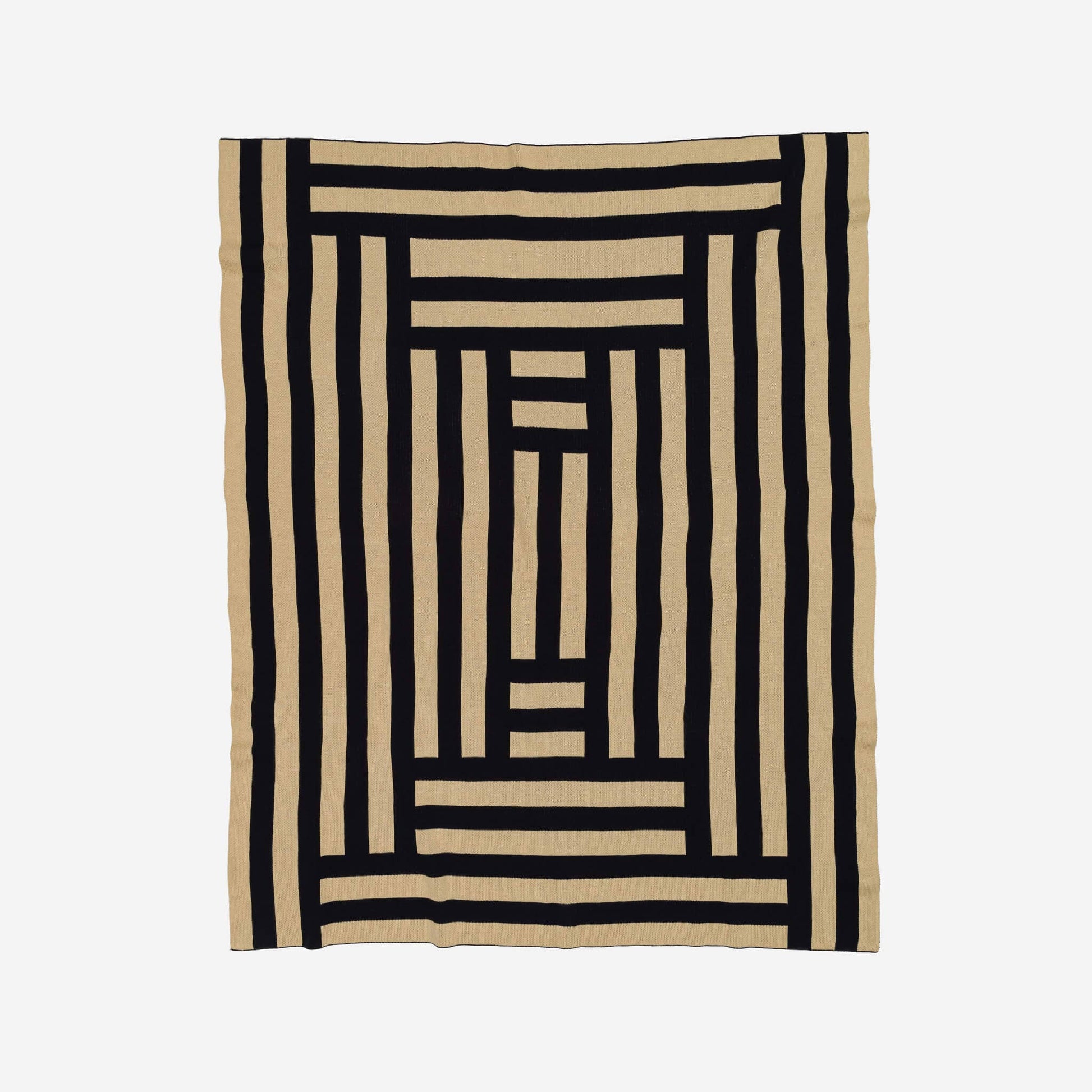 Jacquard knit throw with bold two-tone interlocking stripes pattern. Mix and match with contrasting patterns or layer with a coordinating pillow for a high-impact look. Cotton-weight for year-round use. Knit with new and repurposed yarn. Fully reversible.