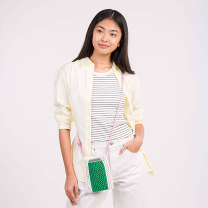 Easy, minimal, and bright colorblock phone sling made from deadstock raffia and yarn. Layer with your favorite bag or wear it alone for a super streamlined fit. Contrasting knit cord strap is adjustable for extra versatility. Sturdy crochet-style knit construction.