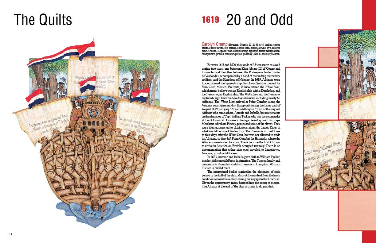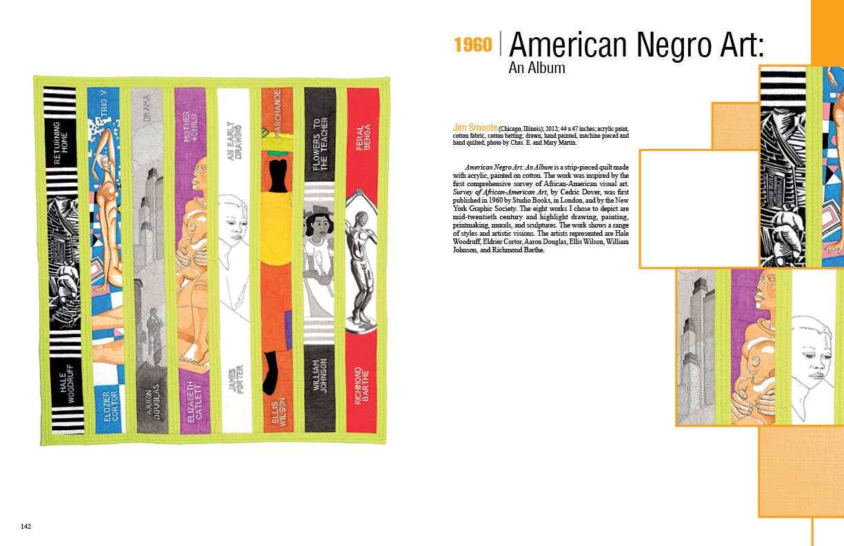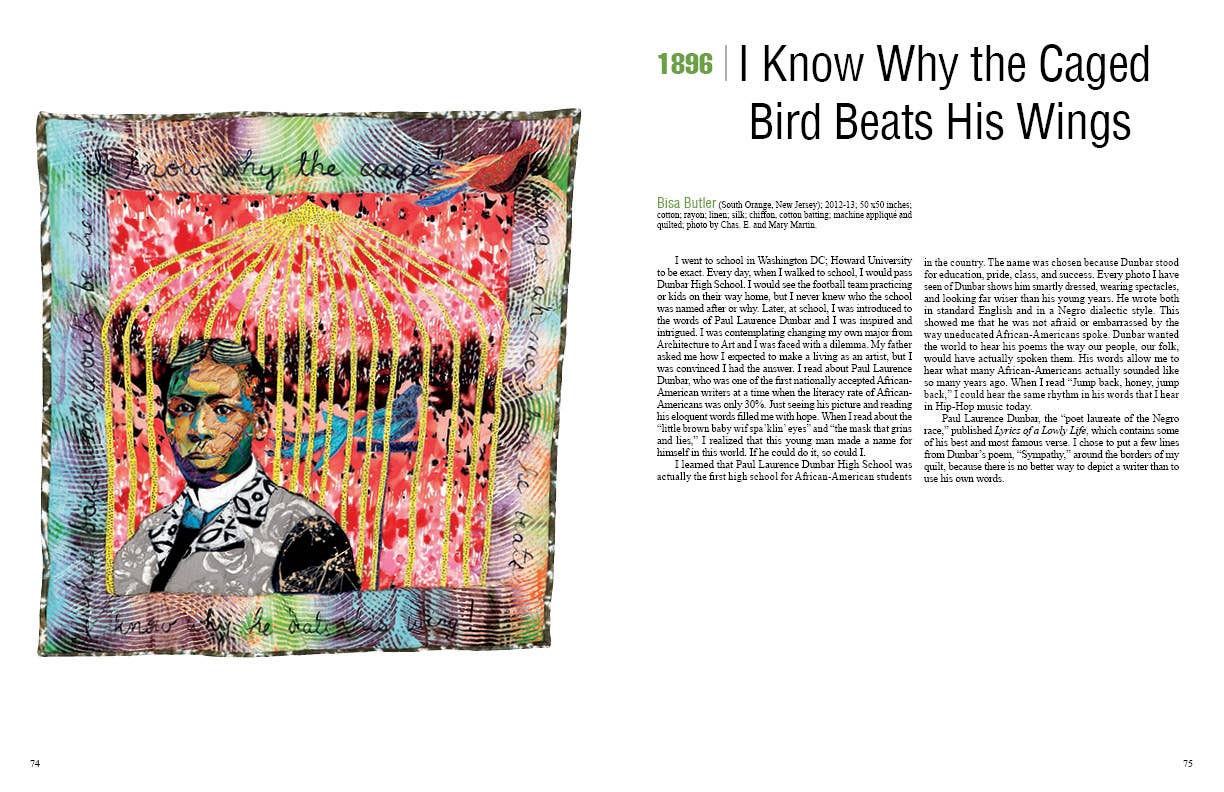 Contemporary quilt artists trace the path of black history in the United States with 97 original works exploring important events, places, people, and ideas over 400 years. Arranged in chronological order, quilt themes include the first enslaved people brought over by Dutch traders in 1619, the brave souls marching for civil rights, the ascendant influence of African American culture on the American cultural landscape, and the election of the first African American president. Other quilts commemorate and celebrate cultural milestones and memories, such as the first African American teacher, the Buffalo Soldier, the first black man to play Othello on Broadway, Muhammed Ali, and Maya Angelous I Know Why the Caged Bird Sings. The 69 artists who contributed works for this curated collection provide narrative explaining the important stories and histories behind the quilts.